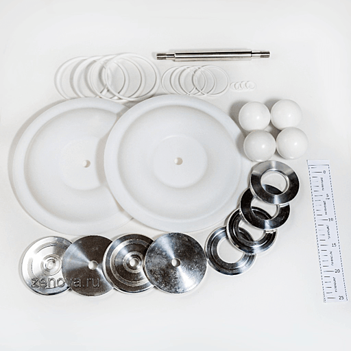Шарики, седла, уплотнения, мембраны, центральный шток, диски мембран