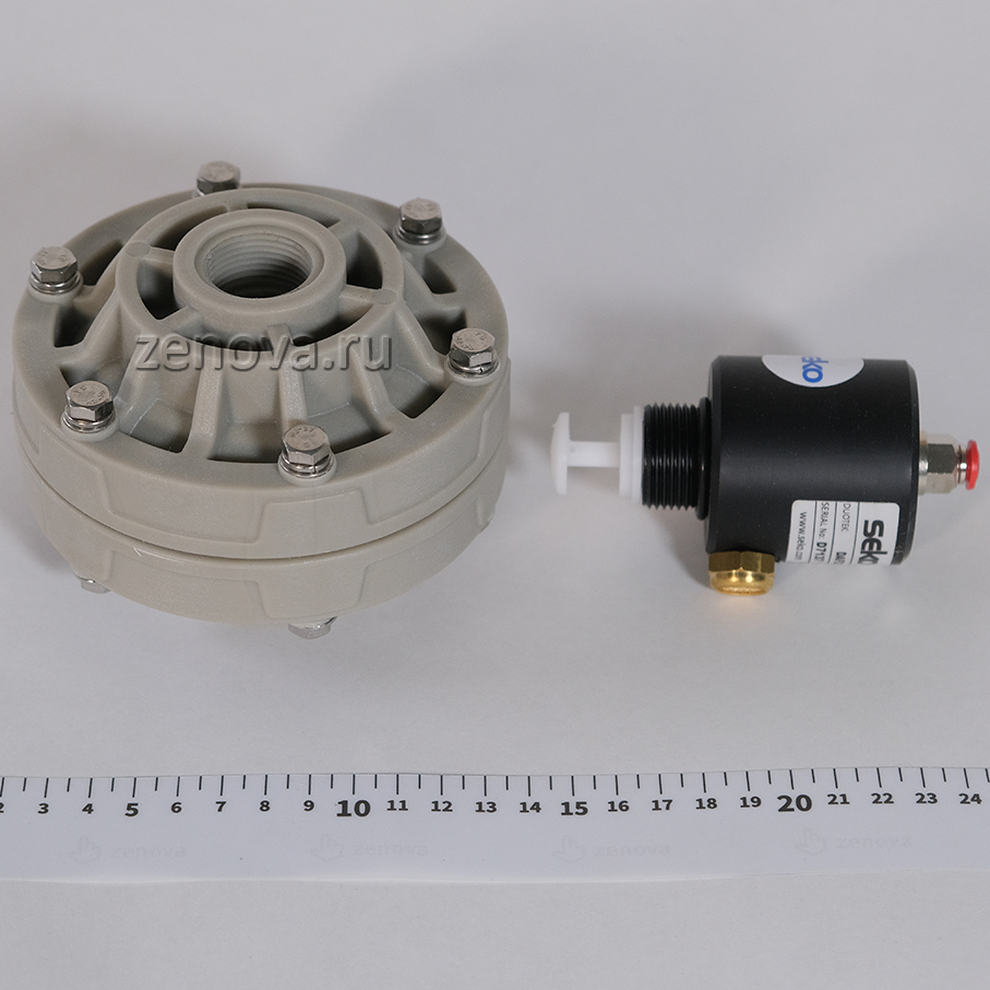 Демпфер пульсаций DAF X2 020 PHT – описаниеДемпфер пульсаций DAF X2 020 PHT снижает пульсации потока жидкости в напорной линии при работе мембранного пневматического насоса. Данный демпфер рассчитан на модели насосов Seko AF0007P, AF0018P, AF0030P. Обратите внимание, что наилучший эффект снижения пульсаций обеспечивает для маленьких насосов AF0007 и AF0018. Для модели AF0030 эффект снижения пульсаций также будет, но в меньшей степени. Для максимальной эффективности для модели AF0030 нужно использовать демпфер DAF X2 025 PHT. О подробном использовании демпферов вы можете прочитать в инструкции по применению.