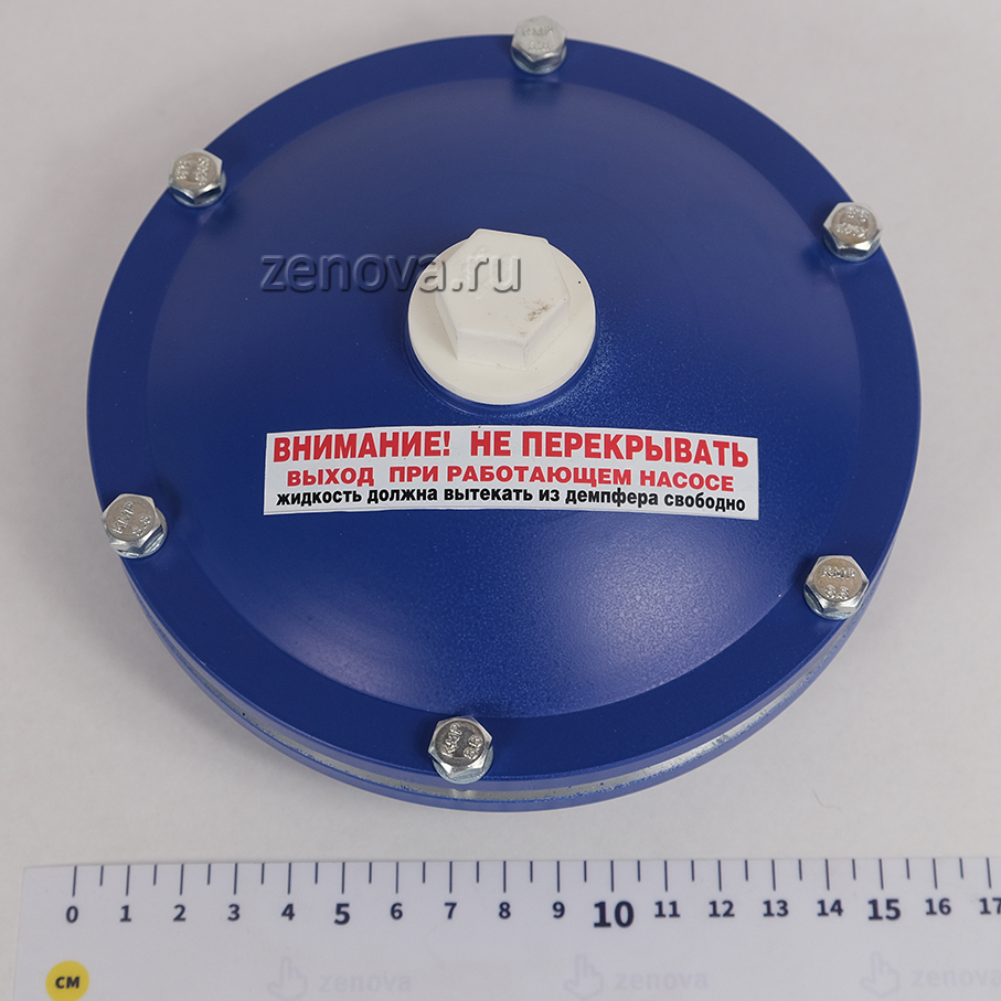 Если вязкость жидкости больше 300 сСт, и давление на выходной линии больше 4 атмосфер, в этом случае можно открутить верхнюю заглушку у демпфера и подключить его к источнику сжатого воздуха для улучшения демпфирующих свойств (давление подаваемого воздуха должно быть чуть меньше давления, нагнетаемого насосом). Однако, это не обязательно. При давлении на выходе меньше 4 атмосфер и вязкости жидкости менее 300 сСт подключение воздуха не требуется совсем.
