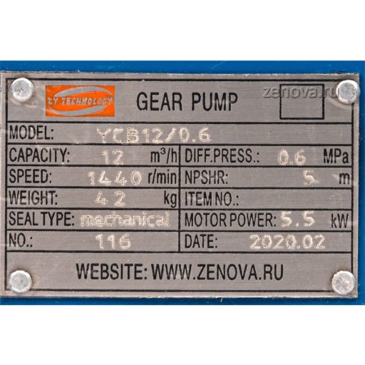 Насос без двигателя YCB12/0.6 (голова) - Zenova