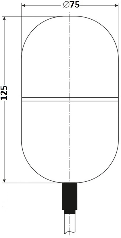 Датчик рассчитан на погружение в жидкость температурой до +150 °С. Оснащен очень гибким силиконовым проводом (радиус изгиба под собственным весом менее 9 см), что позволяет устанавливать поплавок в условиях ограниченного свободного пространства.