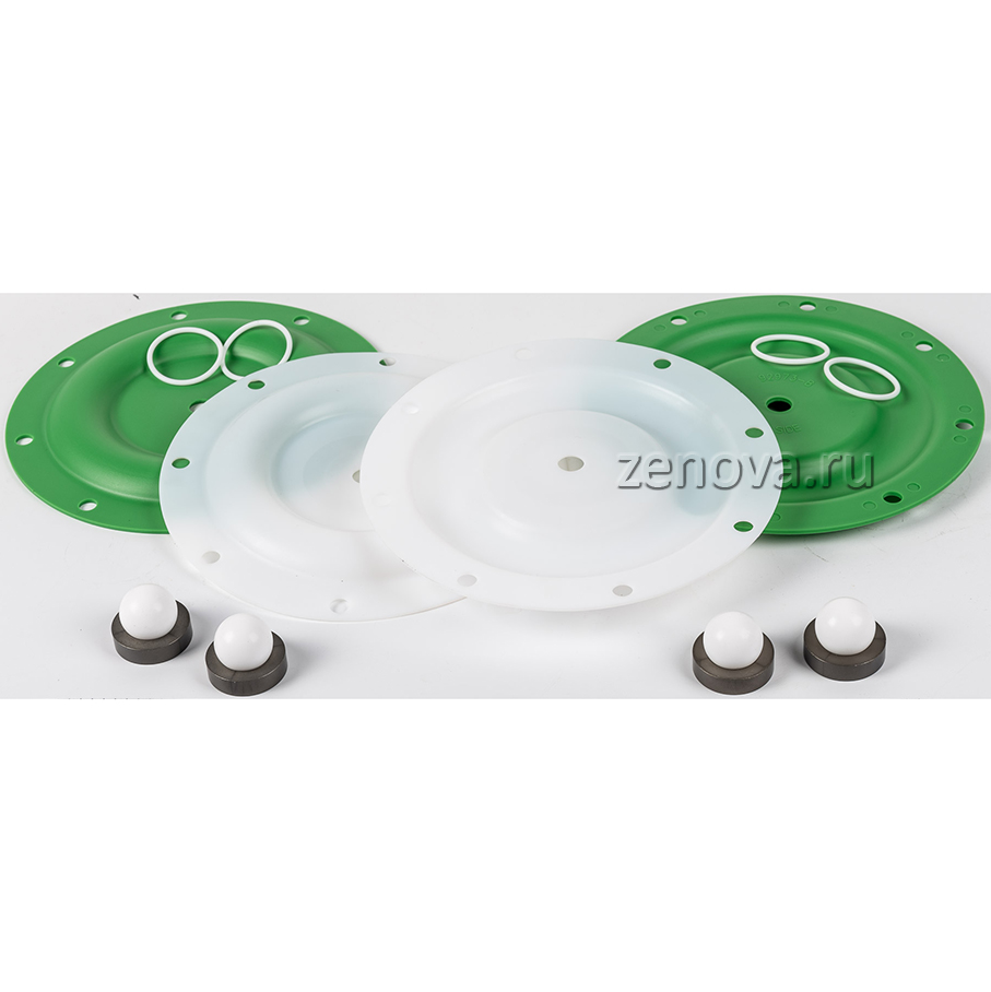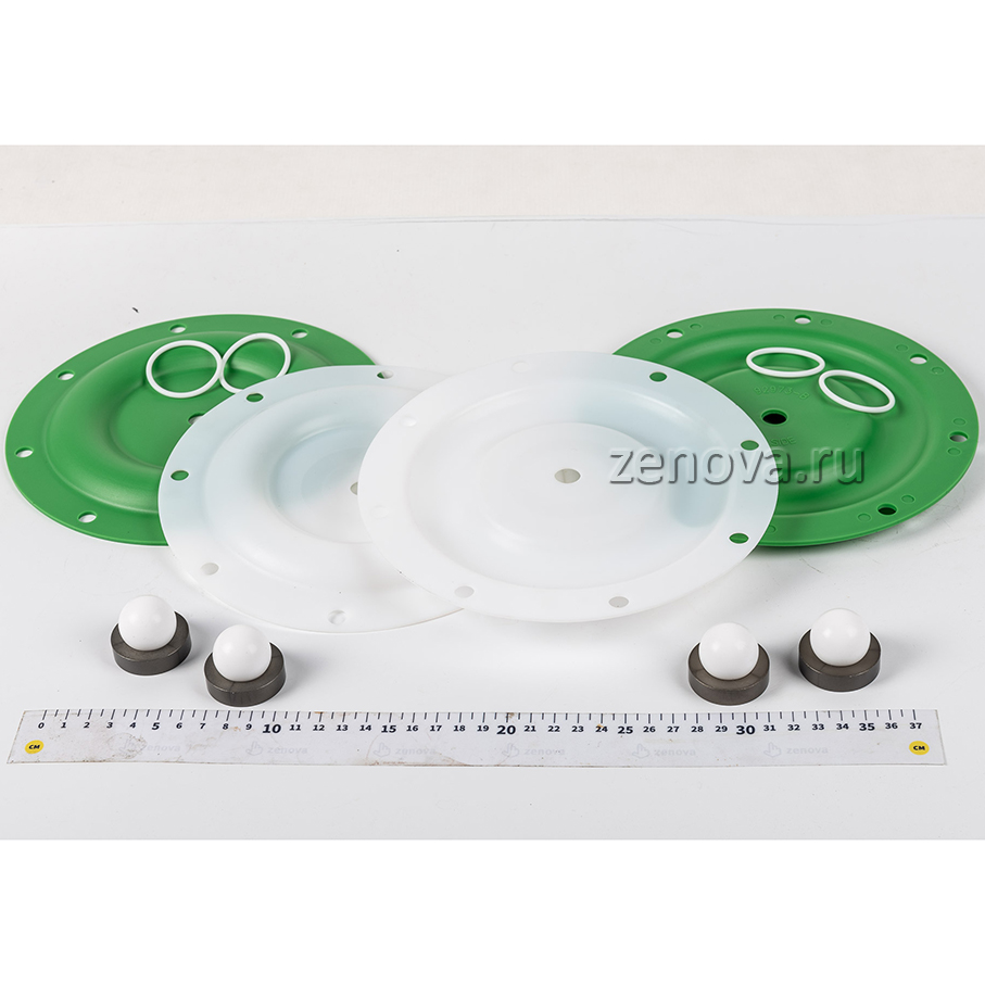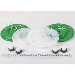 2 мембраны из тефлона, 2 мембраны из сантопрена, 4 шарика из тефлона, 4 седла из алюминия, уплотнения по запросу
