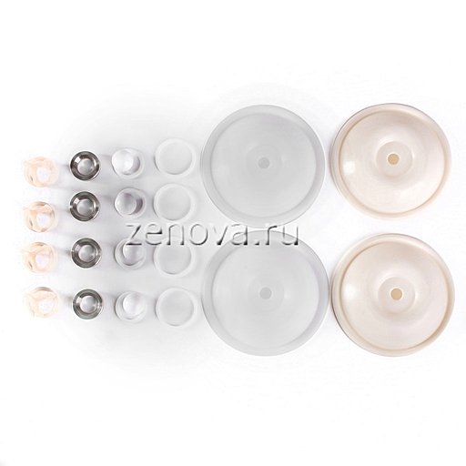 2 мембраны PTFE, 2 мембраны Hytrel, 4 шарика и 4 седла из нержавейки, 4 направляющих из фторопласта, уплотнительные кольца из PTFE