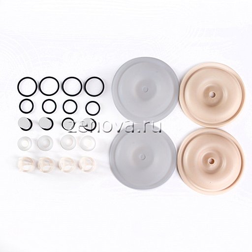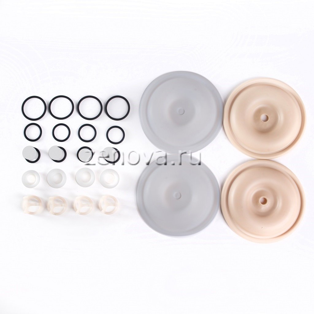 2 мембраны PTFE, 2 мембраны Santoprene, 4 шарика PTFE, 4 седла и 4 направляющих из фторопласта, 12 уплотнительных колец Viton
