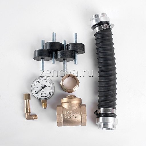 Клапан обратный, манометр, гибкий шланг с фитингами, антивибрационный кронштейн (4 шт.)