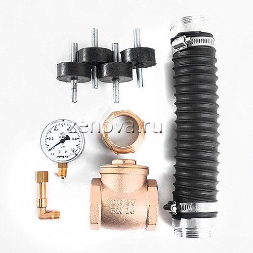 Клапан обратный, манометр, гибкий шланг с фитингами, антивибрационный кронштейн (4 шт.)