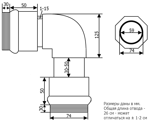 Отвод ПВХ к фильтру AF065 (2½″) – описаниеВес отвода - 1060 г (проверено нами).