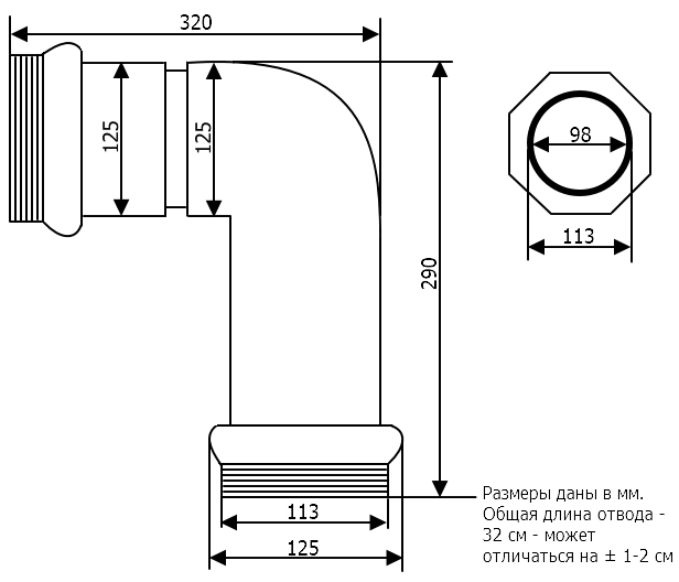 Отвод ПВХ к фильтру AF100 (4″) – описаниеВес отвода - 2 кг (проверено нами).