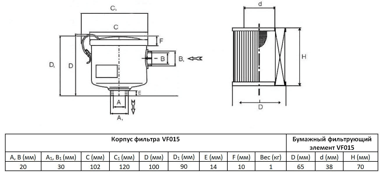 Фильтры VF015 и VF020 имеют одинаковые габариты, отличается только диаметр присоединения.
