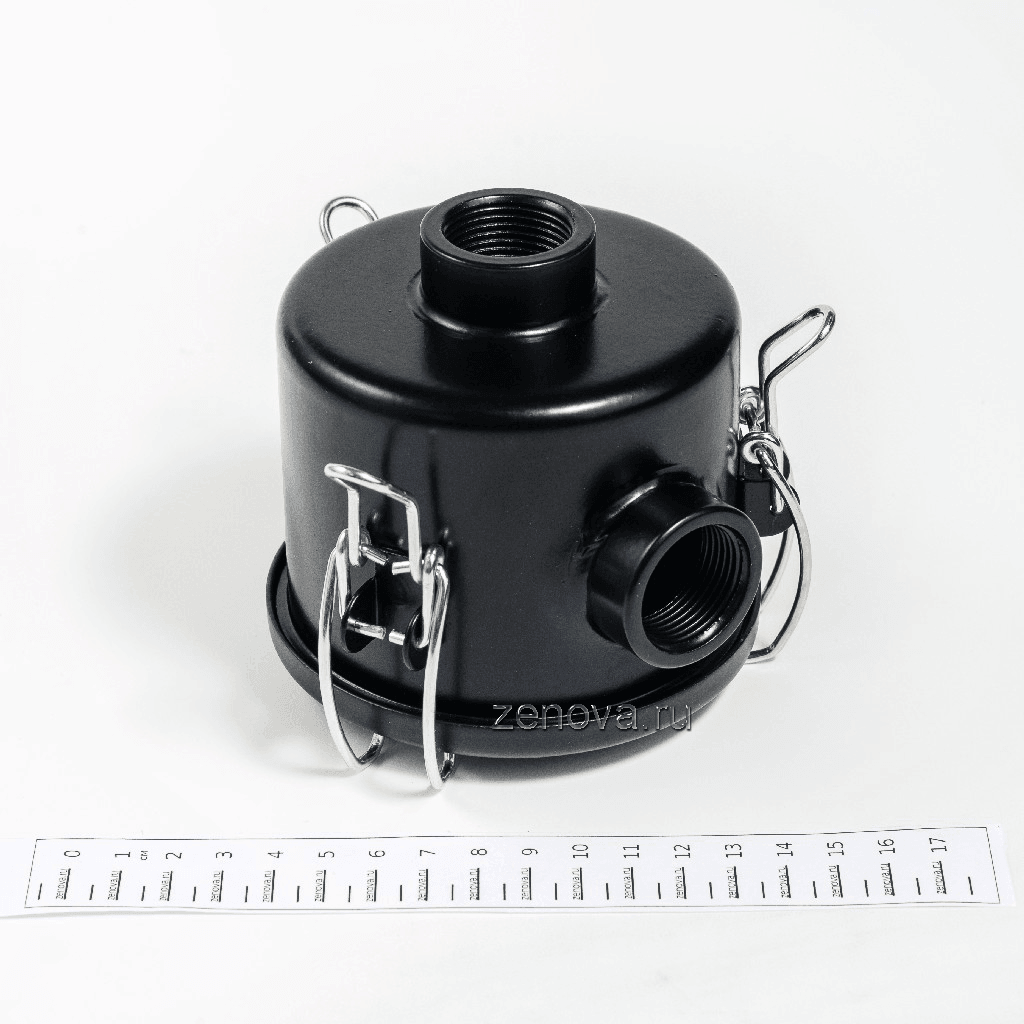 Фильтр имеет 2 входа: снизу и сбоку. Боковой вход нужен для подключения к вакуумируемой линии, а нижний вход - для подключения к всасывающей линии вакуумного насоса.