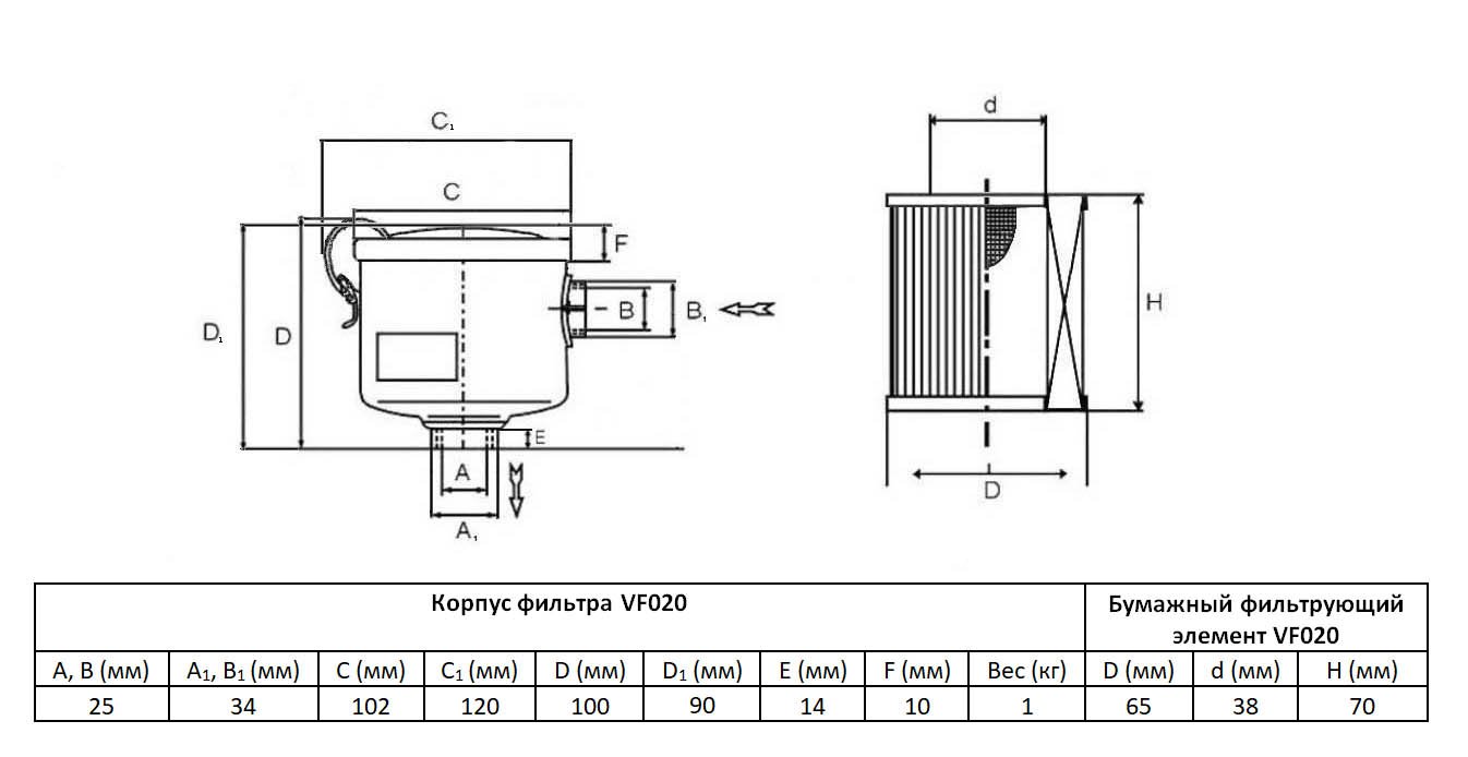 Фильтры VF015 и VF020 имеют одинаковые габариты, отличается только диаметр присоединения.