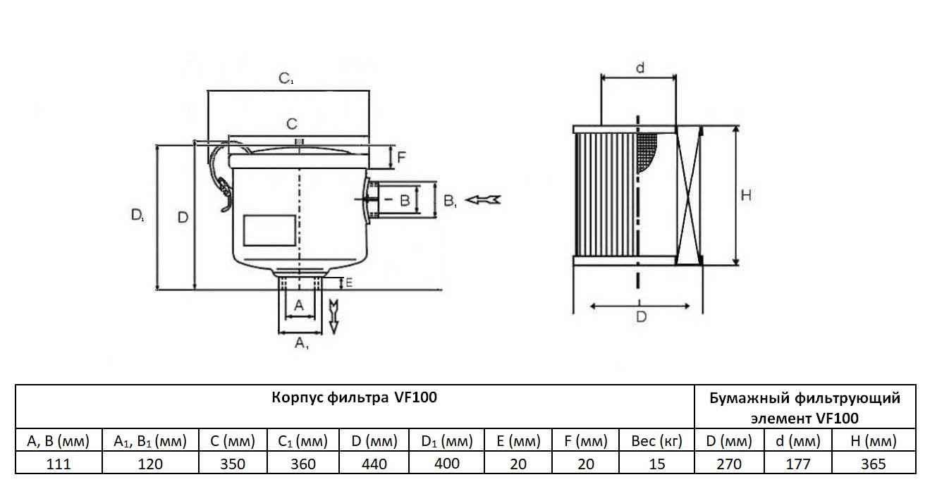 Характеристики фильтра VF100: