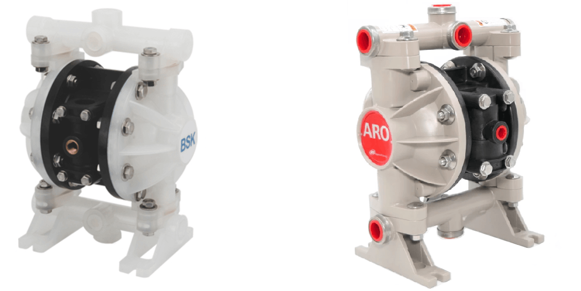 За основу насосов BSK взяты американские насосы ARO. Китайские инженеры скопировали американские модели и затем внесли в конструкцию некоторые изменения. В результате насосы BSK похожи на ARO, но не являются на 100% совместимыми по запчастям.