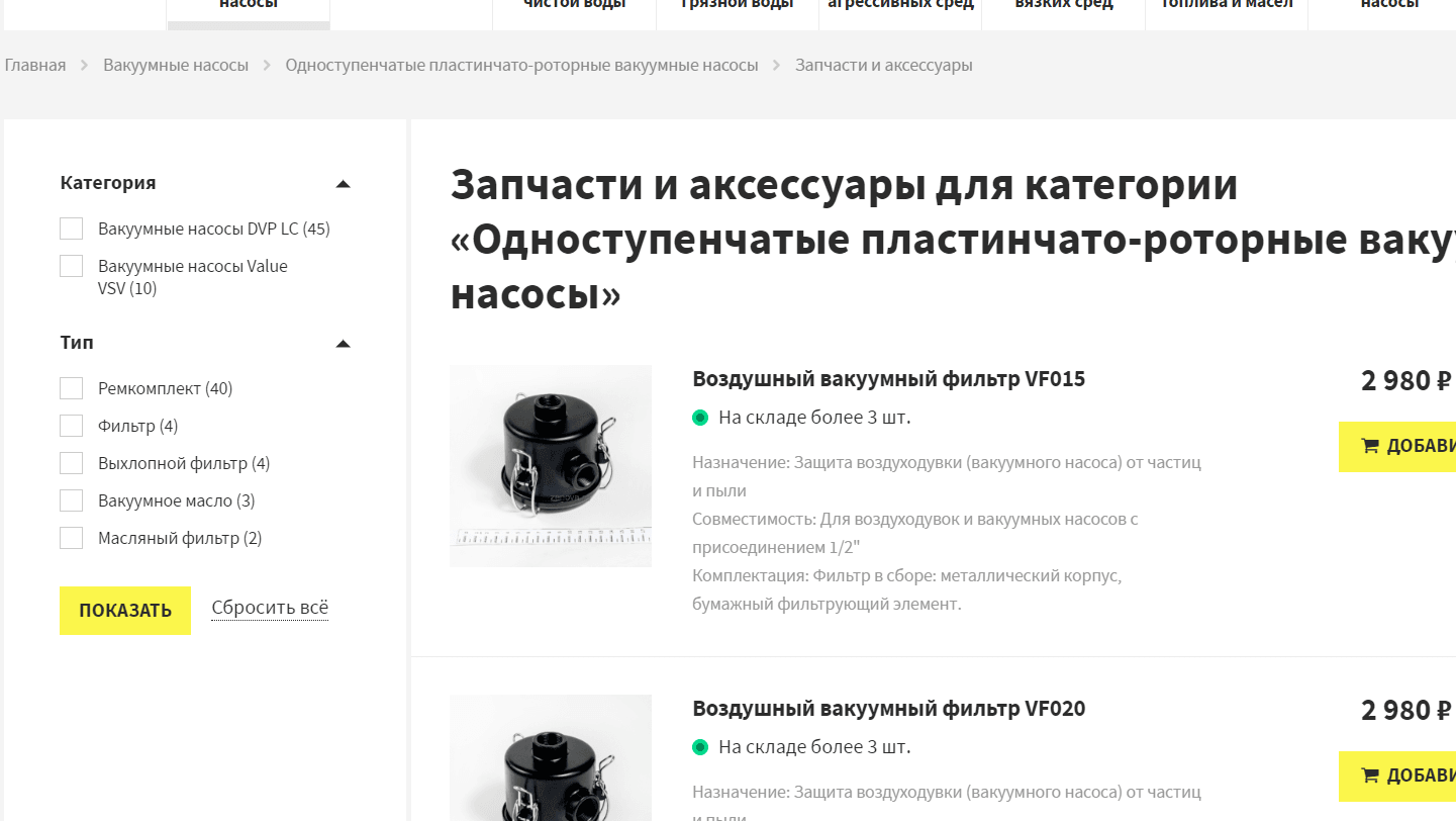 Мы сразу заметили, что работа с запчастями и аксессуарами для насосов теперь стала намного удобнее. Первые опрошенные нами посетители сайта подтвердили это.