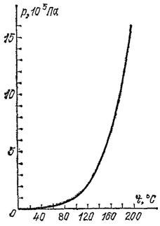 Рис. 2: Зависимость давления насыщенного пара от температуры.