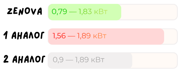 - Энергоэффективность: Благодаря увеличенным обмоткам статора и ротора Zenova потребляет меньше тока при большей производительности.