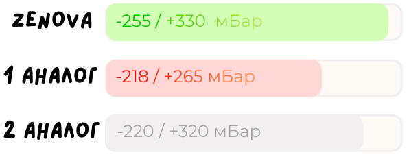 Третий и четвертый вариант отработали уже лучше, полностью подтвердив высокие характеристики (до 320 мБар). То же мы видим и с воздуходувкой Zenova, реальные замеры которой составляют -255…330 мБар. Не будем скромничать, у рабочей камеры нашей воздуходувки максимально выверенная форма вихревого канала – так что результат соответствующий.