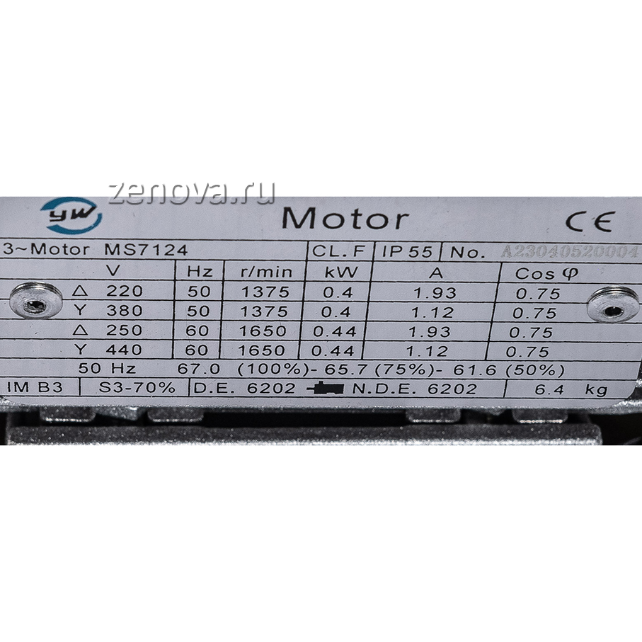 Мощность двигателя 0,4 кВт, 1450 об/мин (4Р), стандартное питание 380 В.