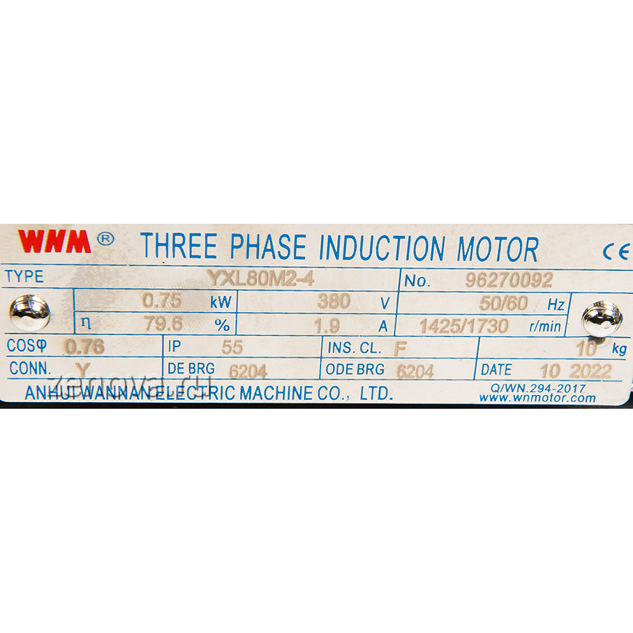 Мощность двигателя 0,75 кВт, 1450 об/мин (4Р), стандартное питание 380 В.