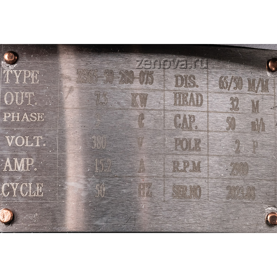 Центробежный насос Zenova ZS65-50-200-075 позволяет перекачивать воду и прочие неагрессивные к нержавеющей стали жидкости. Конструкция насоса моноблочного типа с прямым присоединением двигатель-насос, патрубки фланцевые – всасывающий DN65, подающий DN50.