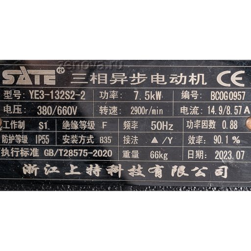 Насос оснащен трехфазным асинхронным двигателем 380 В, 2900 об/мин, мощностью 7,5 кВт.