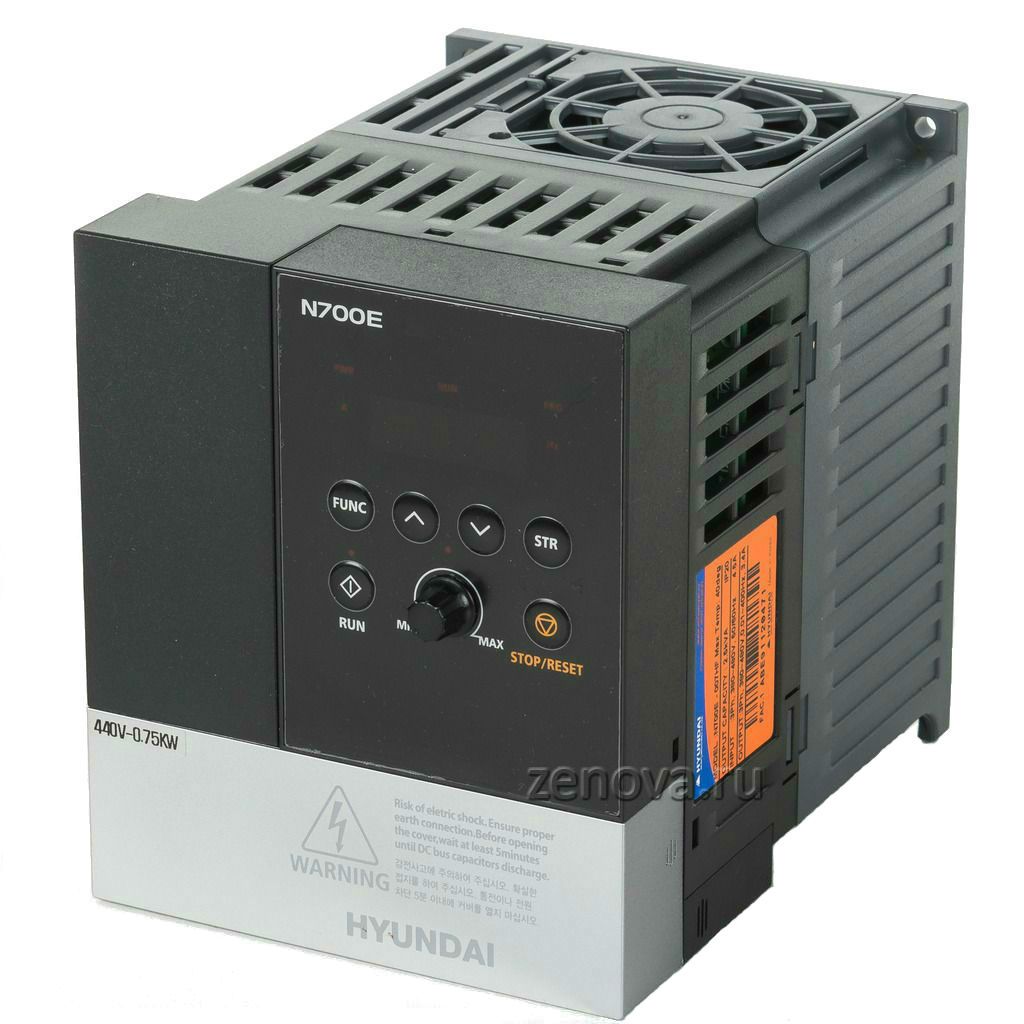 Частотный преобразователь Hyundai N700E_2800HF (производство Корея) обеспечивает скалярное или бессенсорное управление частотой переменного тока. Подходит для трехфазного асинхронного двигателя мощностью не более 280 кВт, номинальная выходная сила тока 525 А. Входной ток трехфазный от 342 до 528 вольт. При слабой нагрузке (насосной) возможна работа с двигателем 320 кВт (сила тока до 600 А).