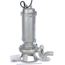 Дренажный погружной насос Vetlan 50WQS15-30-4-304 выполнен из нержавеющей стали AISI 304. Литой корпус с толстыми стенками рассчитан на перекачивания кислотных, щелочных или нейтральных стоков с уровнем рН 5-9 и может использоваться в химической промышленности, сельском хозяйстве, а также в других задачах, где предъявляются самые высокие требования к коррозионной стойкости погружного насоса. Двухканальное полузакрытое рабочее колесо обеспечивает достаточно сильный напор и высокий КПД, пропускает твердые включения диаметром 15 мм. Максимальная глубина погружения насоса 10 метров. Выходной патрубок DN50, соединение круглый фланец.