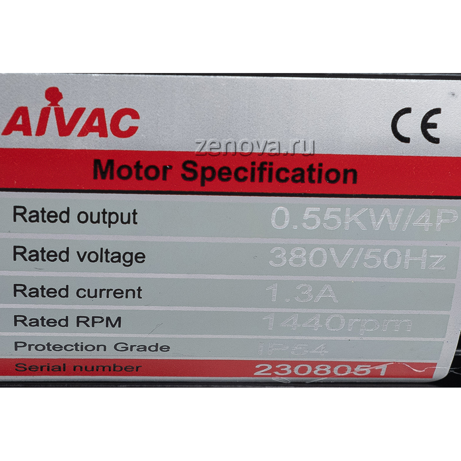 Насос оснащен трехфазным электродвигателем мощностью 0,55 кВт, 1440 об/мин, 380 В/50 Гц.