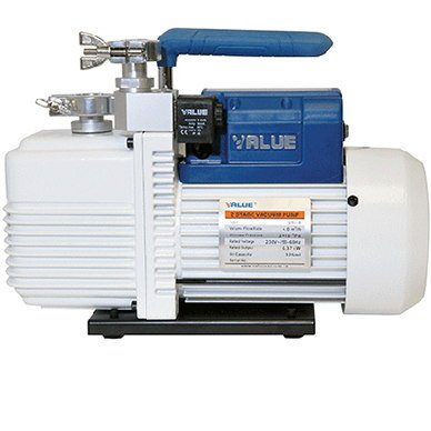 Двухступенчатый пластинчато-роторный вакуумный насос Value VRI-4 откачивает воздух со скоростью до 4 м3/час и создает стабильный вакуум с остаточным давлением 0,03 мбар (3 Па). Это классический маслозаполненный вакуумный насос.