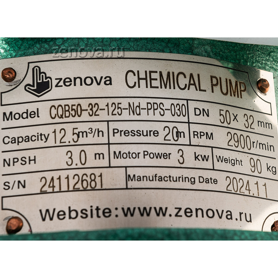 Герметичный химический насос CQB 50-32-125-Nd-PPS-030 – это футерованный фторопластом центробежный насос с неодимовой магнитной муфтой. Насос перекачивает высококонцентрированные органические и неорганические кислоты, соединения, щелочи плотностью 1,8 кг/дм³ (1800 кг/м³). Корпус насоса изготовлен из чугуна HT200, внутренняя футеровка корпуса и рабочее колесо выполнены из фторопласта FEP. Чугун обеспечивает насосу механическую прочность, а фторопласт высокую химическую стойкость. Неодимовая магнитная муфта надежно защищает насос от риска утечки перекачиваемой жидкости.