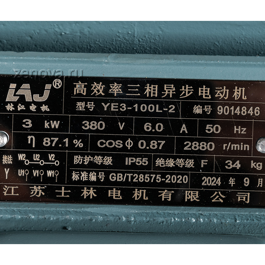 Приводом насоса служит трехфазный двигатель 380 В, 2900 об/мин (2Р), мощностью 3 кВт.