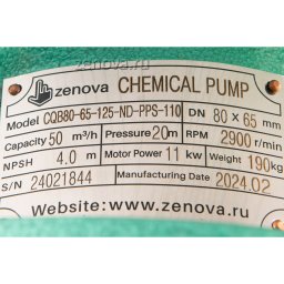 Герметичный химический насос CQB 80-65-125-Nd-PPS-110 – это футерованный фторопластом центробежный насос с неодимовой магнитной муфтой. Насос перекачивает высококонцентрированные органические и неорганические кислоты, соединения, щелочи плотностью 1,8 кг/дм³ (1800 кг/м³). Корпус насоса изготовлен из чугуна HT200, внутренняя футеровка корпуса и рабочее колесо выполнены из фторопласта FEP. Чугун обеспечивает насосу механическую прочность, а фторопласт высокую химическую стойкость. Неодимовая магнитная муфта надежно защищает насос от риска утечки перекачиваемой жидкости.