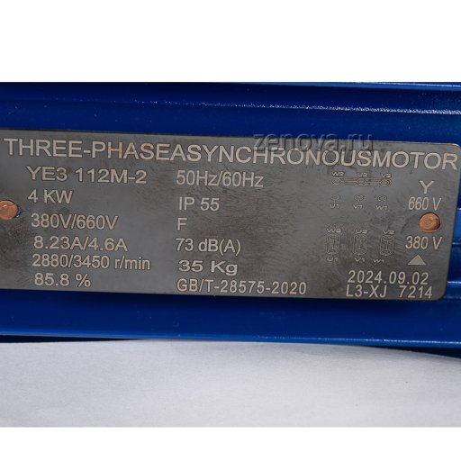 Двигатель мощностью 4 кВт, 3 фазы, 380 В, 50 Гц.