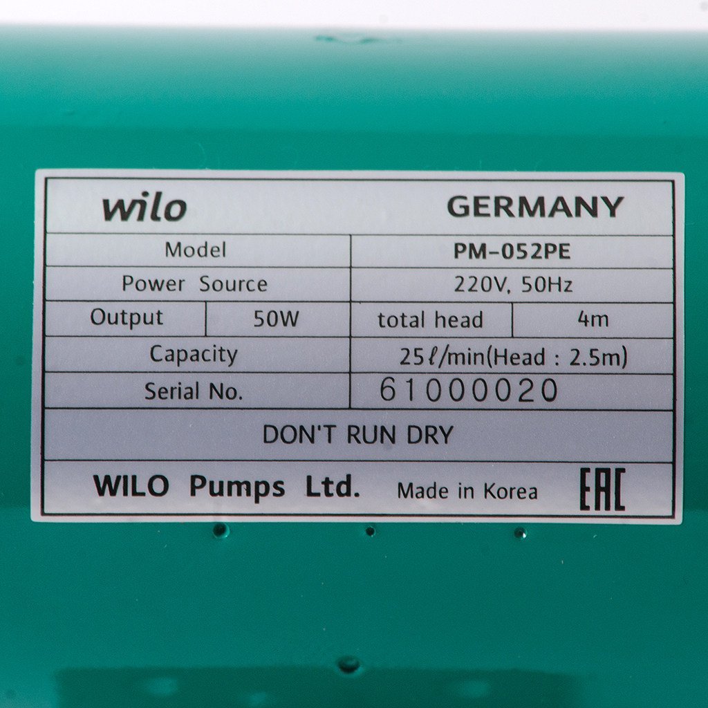 Насос PM-052PE оснащен конденсаторным электродвигателем выходной мощностью 50 Вт (0,05 кВт).