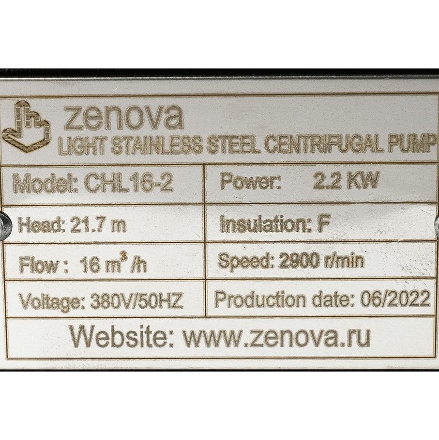 Габаритный чертеж модели Zenova CHL 16-2 v.380