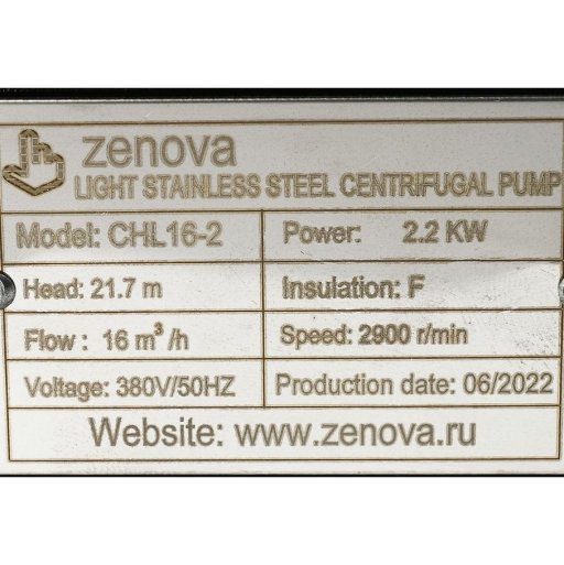 Горизонтальный многоступенчатый насос CHL 16-2 v.380 применяется в бытовом, промышленном, сельскохозяйственном водоснабжении для подачи чистой воды без абразивных примесей. Насос устойчив к коррозии, основным конструкционным материалом является нержавеющая хромоникелевая сталь AISI 304, из нее изготовлены корпус насоса, корпус каскада, рабочее колесо, вал, крышка корпуса и распорная втулка. Насос имеет 2 рабочие ступени. Оборудован патрубками с внутренней резьбой: всасывающий патрубок диаметром G2" (50 мм), расположен горизонтально, выше вала насоса; напорный патрубок того же диаметра направлен вверх.