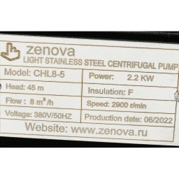 Горизонтальный многоступенчатый насос CHL 8-5 v.380 применяется в бытовом, промышленном, сельскохозяйственном водоснабжении для подачи чистой воды без абразивных примесей. Насос устойчив к коррозии, основным конструкционным материалом является нержавеющая хромоникелевая сталь AISI 304, из нее изготовлены корпус насоса, корпус каскада, рабочее колесо, вал, крышка корпуса и распорная втулка. Насос имеет 5 рабочих ступеней. Оборудован патрубками с внутренней резьбой: всасывающий патрубок диаметром G2" (50 мм), расположен горизонтально, выше вала насоса; напорный патрубок того же диаметра направлен вверх.