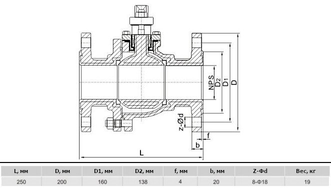 Кран рассчитан на давление до 1,6 МПа, что примерно соответствует 16 атмосферам. Условный проход составляет 80 мм или 3 дюйма. Посадочные отверстия совместимы со стандартными фланцами.