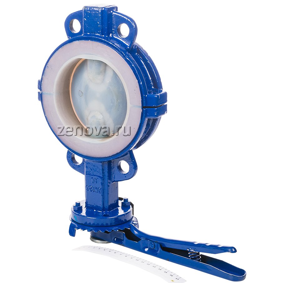 Поворотный затвор с защитной футеровкой FEP используется в трубопроводах по разливу агрессивных сред, кислот, щелочей и растворителей. Затвор имеет стандартные фланцы. Рассчитан на номинальное давление не более 1,6 МПа или 16 атмосфер. Условный проход 125 мм или 5 дюймов. Фторопласт FEP подходит для большинства промышленных задач, но все же перед покупкой лучше проверить его совместимость с перекачиваемыми растворами по таблицам химической совместимости.