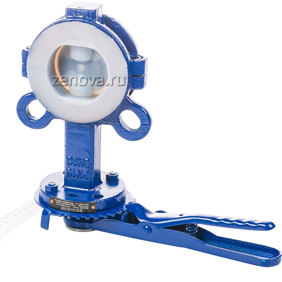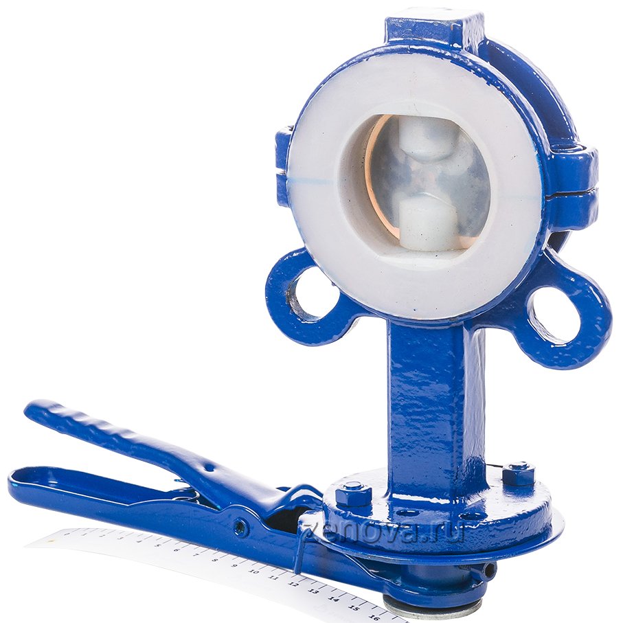 Поворотный затвор с защитной футеровкой FEP используется в трубопроводах по разливу агрессивных сред, кислот, щелочей и растворителей. Затвор имеет стандартные фланцы. Рассчитан на номинальное давление не более 1,6 МПа или 16 атмосфер. Условный проход 65 мм или 2½ дюйма. Фторопласт FEP подходит для большинства промышленных задач, но все же перед покупкой лучше проверить его совместимость с перекачиваемыми растворами по таблицам химической совместимости.