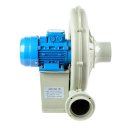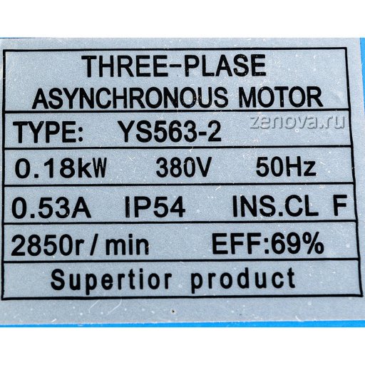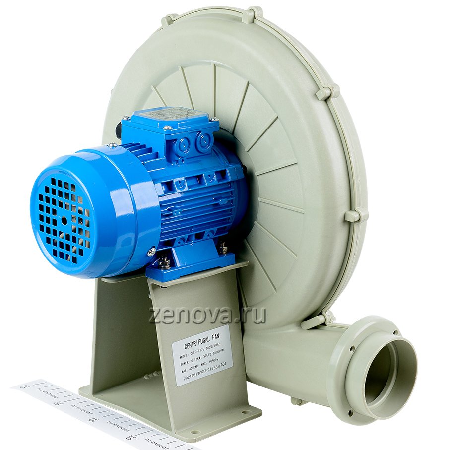 Вентилятор оборудован асинхронным трехфазным двигателем 380 В, 0,18 кВт, 2P, 2850 об/мин. У этой модели вентиляторов невозможно изменить положение улитки (=выхода). Также нет возможности отсоединить двигатель от улитки, не перепаивая полиэтилен.