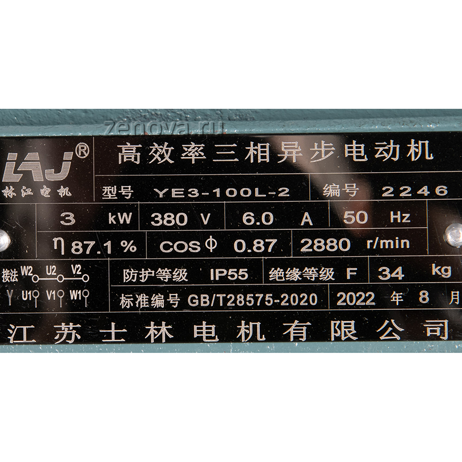 Насос оборудован трехфазным двигателем 380 В, 2900 об/мин (2Р), мощностью 3 кВт.