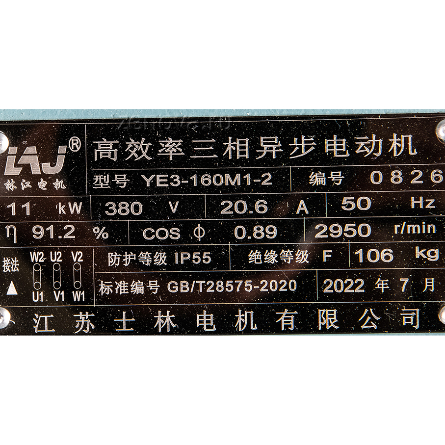 Насос оборудован трехфазным двигателем 380 В, 2900 об/мин (2Р), мощностью 11 кВт.