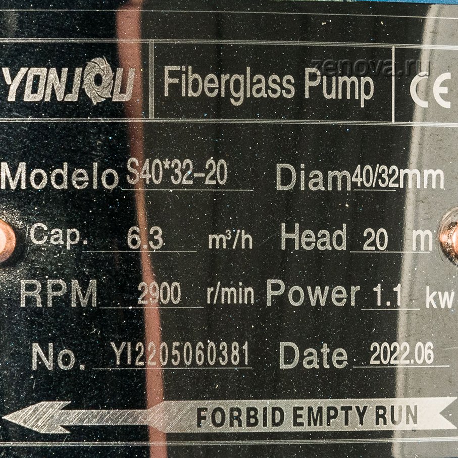 Химический центробежный насос ZY Technology S40x32-20 выдерживает большие механические нагрузки, корпус насоса сделан из стеклопластика (fiberglass).
