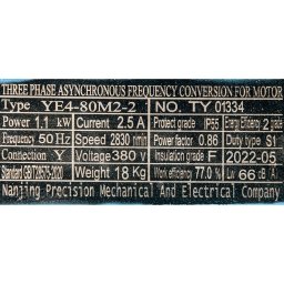 Насос оборудован трехфазным двигателем 380 В, 2900 об/мин (2Р), мощностью 1,1 кВт.