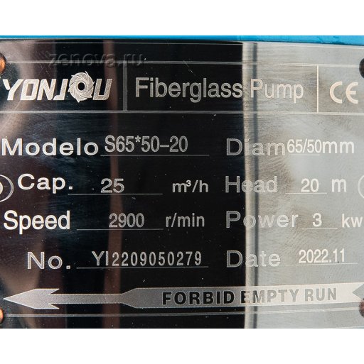 Химический центробежный насос ZY Technology S65x50-20 выдерживает большие механические нагрузки, корпус насоса сделан из стеклопластика (fiberglass).