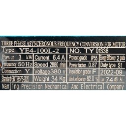 Насос оборудован трехфазным двигателем 380 В, 2900 об/мин (2Р), мощностью 3 кВт.