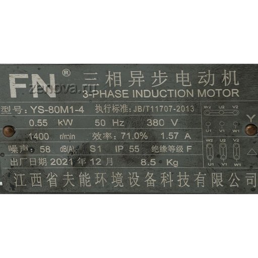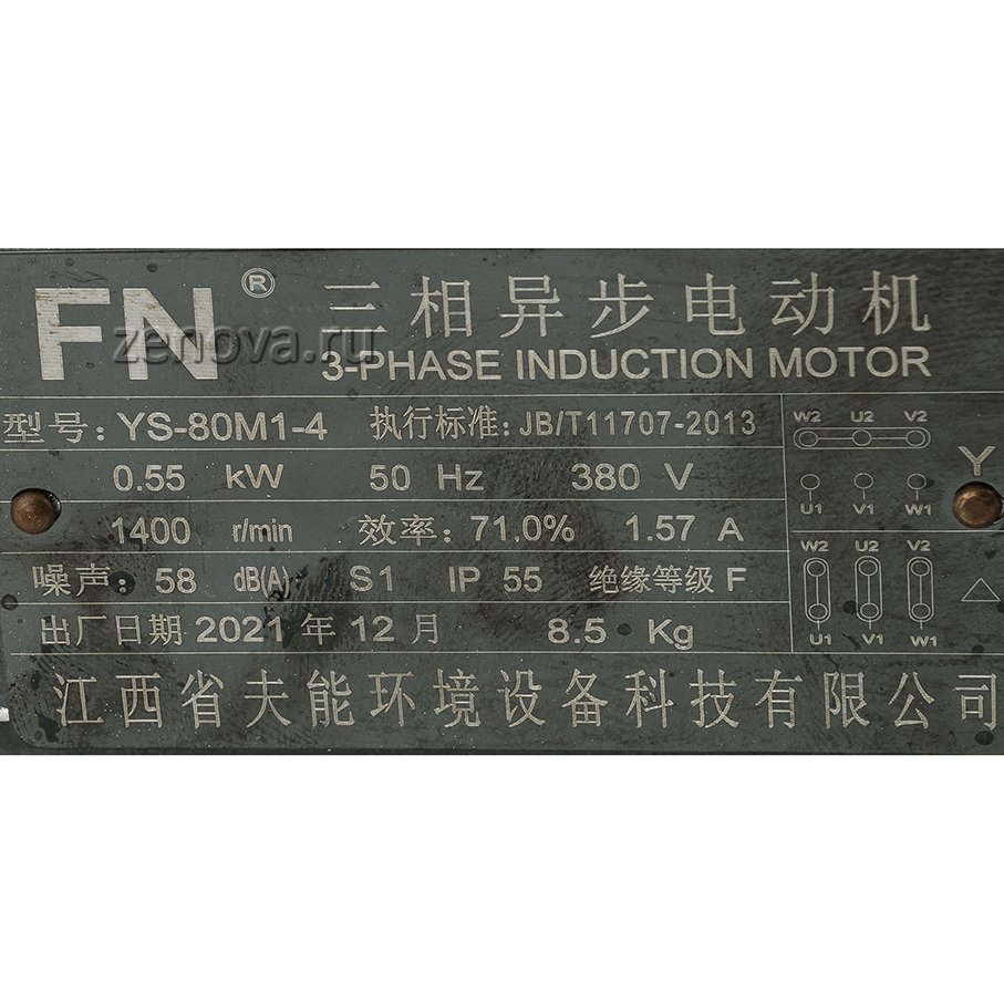 Насос оснащен трехфазным двигателем 380 В, количество оборотов – 1400 в минуту, частота 50 Гц, мощностью 0,55 кВт.