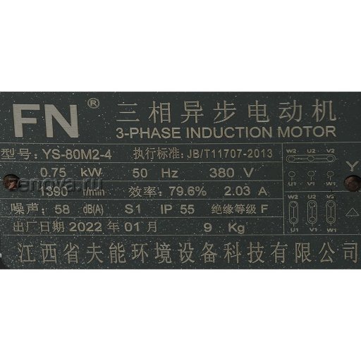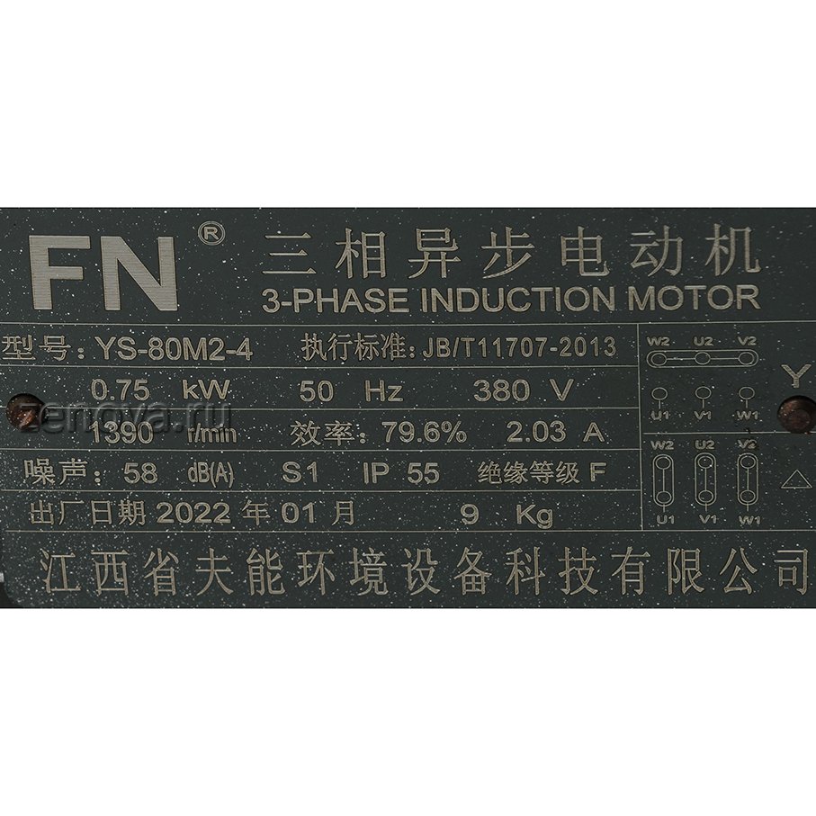 Насос оснащен трехфазным двигателем 380 В, количество оборотов – 1400 в минуту, частота 50 Гц, мощностью 0,75 кВт.