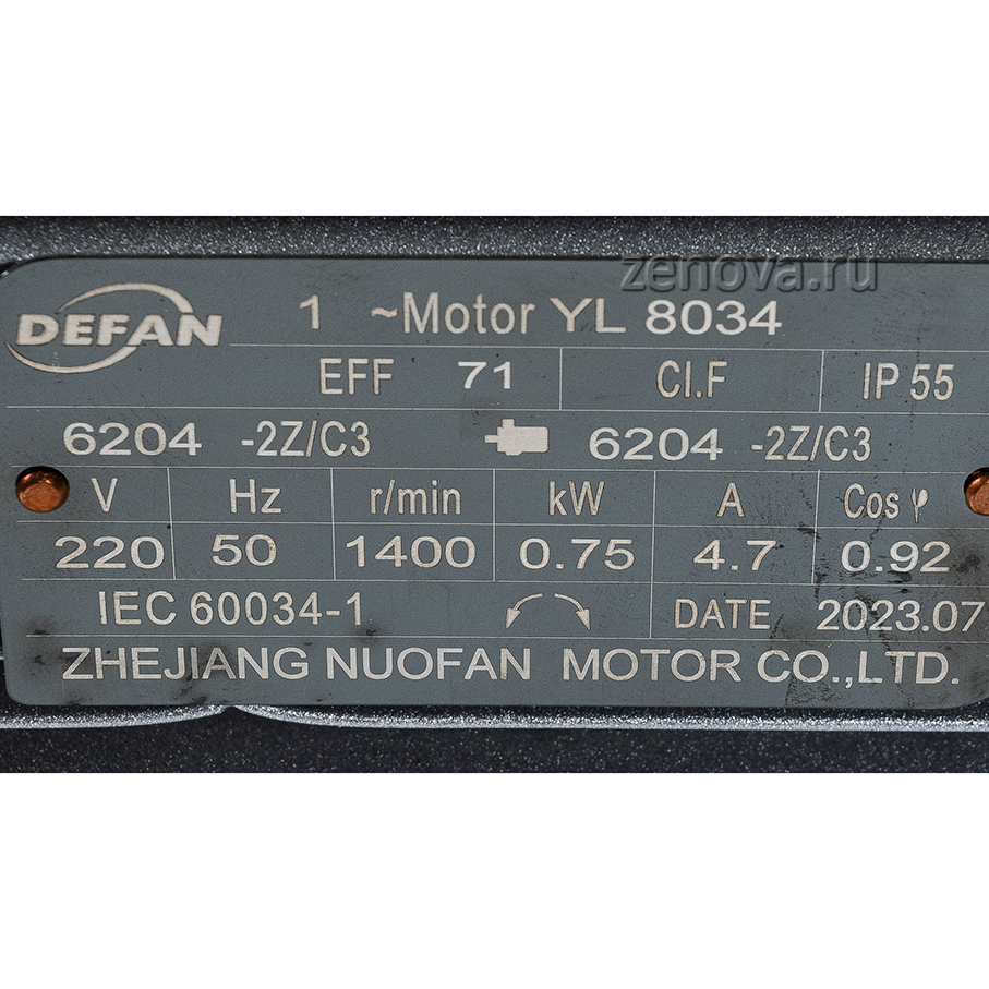 Насос оснащен однофазным двигателем 220 В, количество оборотов – 1400 в минуту, частота 50 Гц, мощностью 0,75 кВт.